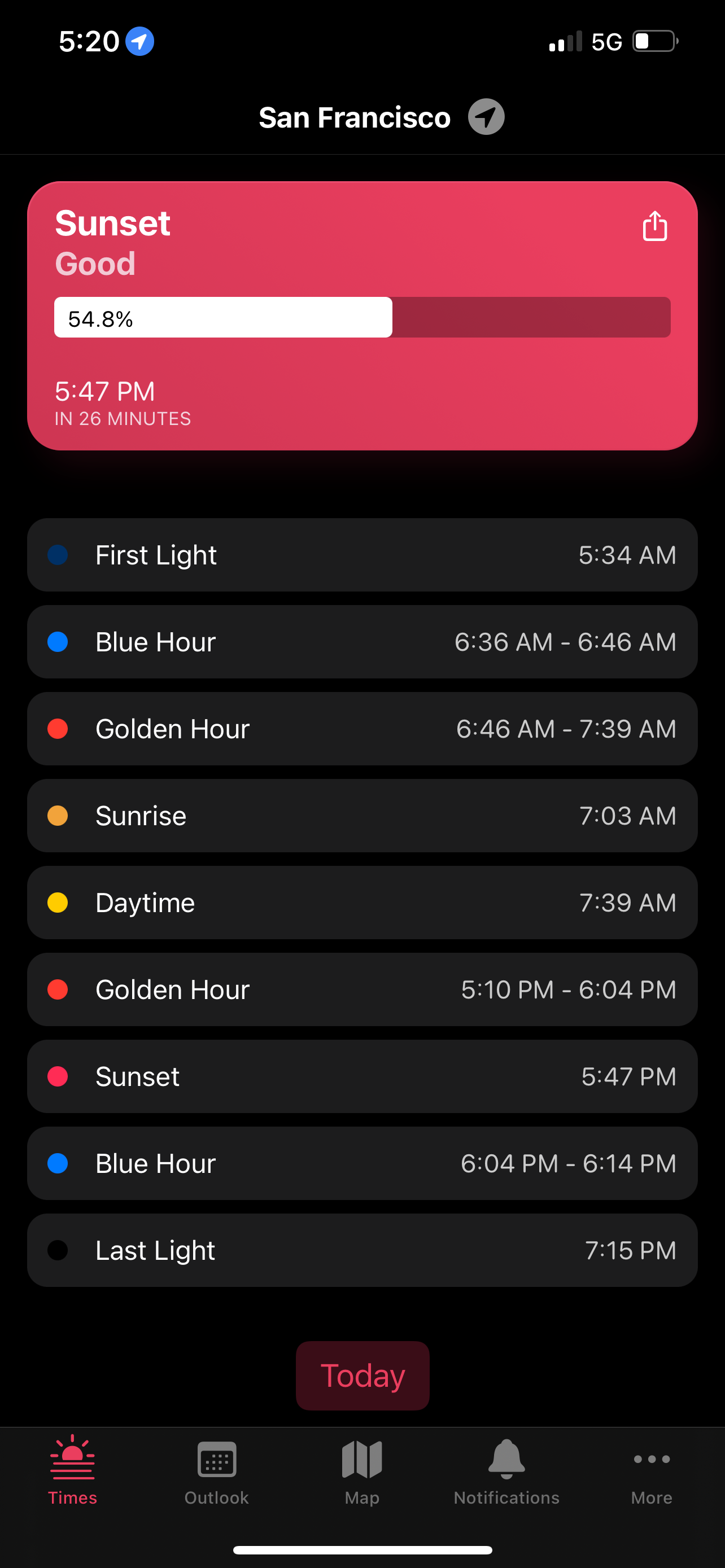 Today was suppose to be a spectacular day for catching a great sun set with rolling clouds and incredibly clear weather. All the planning apps told me so. I was suppose to go and chase my muse to Baker beach and capture some spectacular vision. The picture was suppose to look like this: